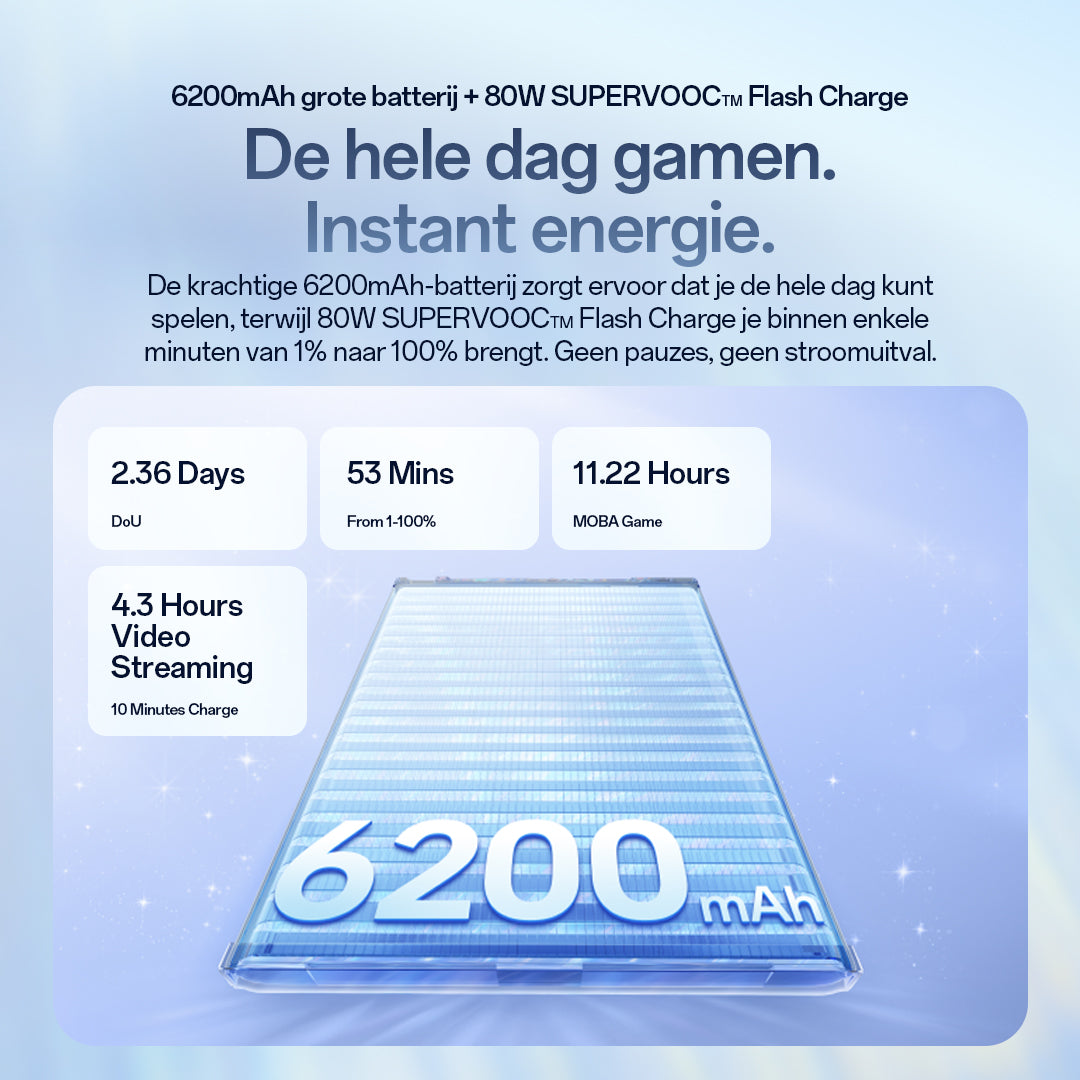 - 80W SUPERVOOC™ fast charging—0 → 100% in just 53 minutes